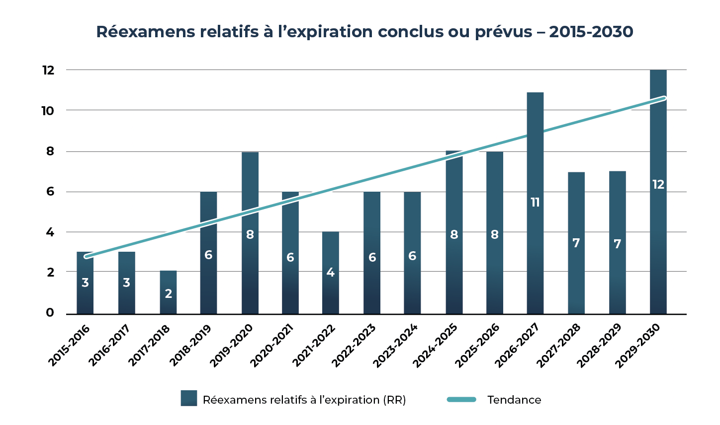 Si le Tribunal détermine que les marchandises importées causent un dommage ou menacent de causer un dommage à une branche de production nationale, des droits antidumping ou, en cas de subventionnement, compensateurs sont perçus relativement aux importations pour une période de cinq ans. Les conclusions de dommage ou de menace de dommage expirent après cinq ans, à moins que le Tribunal ne les proroge à la suite d’un réexamen relatif à l’expiration. Les conclusions peuvent être annulées de manière anticipée dans certaines circonstances.