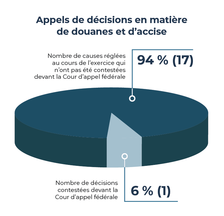 Graphique circulaire d’appels de décisions en matière de douanes et d’accise au cours de l’exercice.